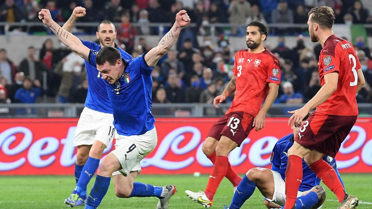 20 hours agoItaly were held to a 1-1 draw by Switzerland in Rome in a 2022 FIFA World Cup qualifier keeping Group C on the edge. Switzerland 050 Jorginho misses an opportunity to qualify Italy for the World Cup in a 1-1 draw vs. Switzerland goalkeeper Yann Sommer celebrates after Italys Jorginho third left blasted the ball over the bar to miss a penalty during the World Cup 2022 group C qualifying soccer match between Italy and Switzerland at Romes Olympic stadium Friday Nov.